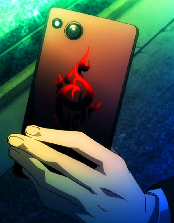 Cell Phone: Kusanagi carries a cell phone with him. It has a red back cover and the insignia of HOMRA is engraved at the center, colored an even darker red.[3]