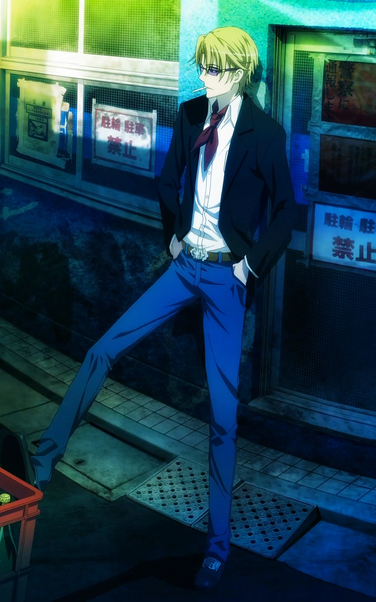 Izumo Kusanagi (草薙出雲, Kusanagi Izumo) is a Clansman (second in command) of HOMRA and the owner of a local bar, which is the namesake of his Clan. Fittingly, he is a bartender but appears to also work as an underground informant.