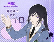 K -Wonderful School Days- (学園K -Wonderful School Days-) is an Otomate game created by Ideal Factory, licensed by GoRA・GoHands. It was released on October 30, 2014 [1]. There is a remake edition called Gakuen K ~wonderful school days~ V edition. It was originally going to be released on October 22, 2015, but slated to December 17, 2015.[2]